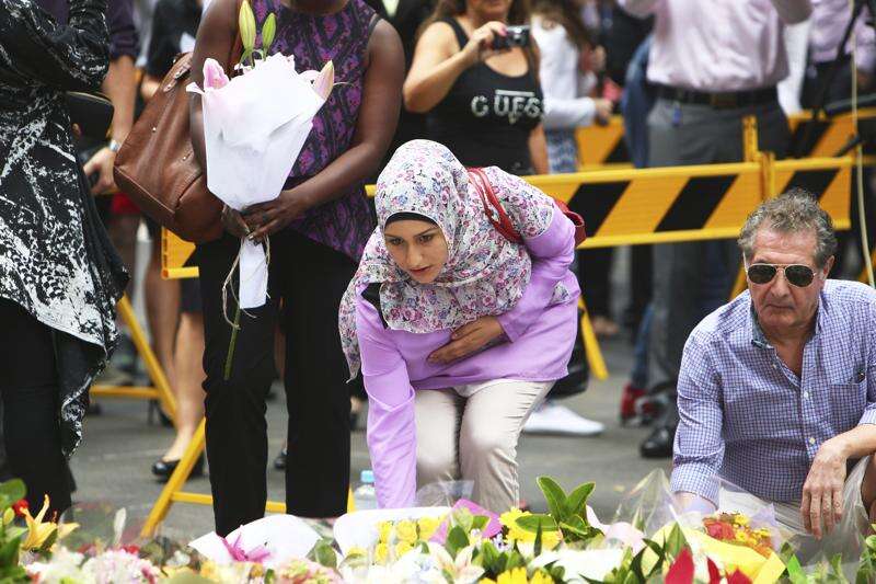 Thousands of tearful Australians continued to pour into Martin Place on Wednesday, a plaza in the heart of Sydney's financial and shopping district where the Lindt Chocolat Cafe - the site of the siege - is located. A makeshift memorial had grown into a mountain of flowers left to honor the hostages killed: Katrina Dawson, a 38-year-old lawyer and mother of three, and Tori Johnson, the cafe's 34-year-old manager. Officials have not said if the two died in crossfire as police stormed in or were shot by their captor.