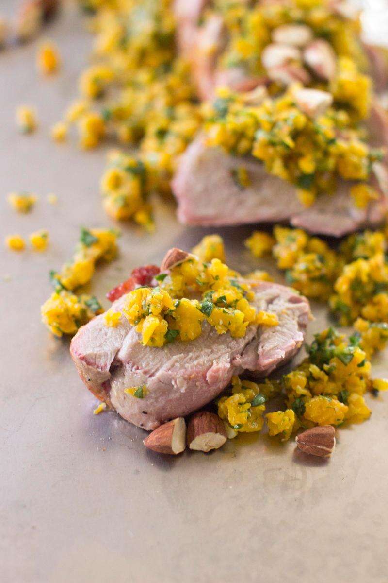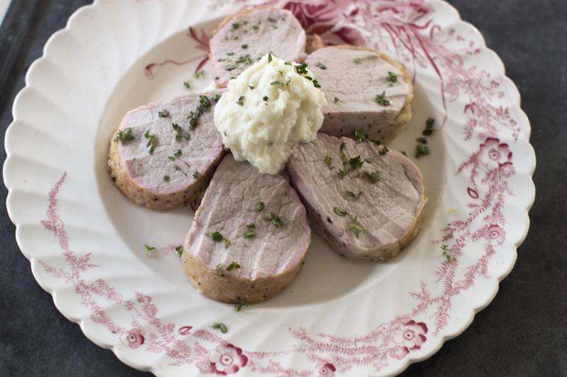 Our choice? Pork tenderloin. Though delicious and tender, it also is neutral enough to pair wonderfully with numerous ingredients. It's also easy to cook. We like to rub it with olive oil, season with salt and pepper, then roast for about 30 minutes. The entire process takes about 5 minutes hands-on time. Thinly sliced, the tenderloins can be paired with any number of sauces or toppings.