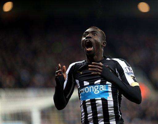 Newcastle United's Papiss Cisse celebrates his goal during their English Premier League soccer match between Newcastle United and Everton at St James' Park, Newcastle, England, Sunday, Dec. 28, 2014. (AP Photo/Scott Heppell) The Associated Press