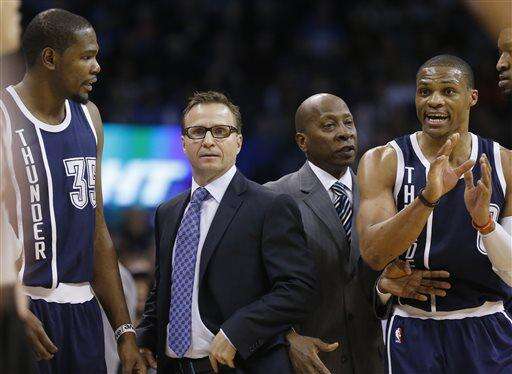OKLAHOMA CITY (AP) - Russell Westbrook was ejected after a fast start, so Kevin Durant put together a big finish.