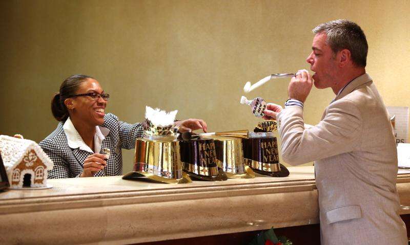 Vangie Dyson, director of front office, left, and Stefan Muhle, general manager, prepare for the New Year's Eve Family Bash at the Hilton Chicago/Oak Brook Hills Resort & Conference Center. Daniel White/dwhite@dailyherald.com