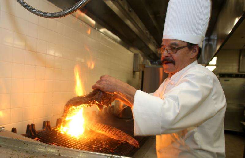Chef Florentino Soriano sears several beef tenderloins in preparation for the New Year's Eve Family Bash at the Hilton Chicago/Oak Brook Hills Resort & Conference Center. Daniel White/dwhite@dailyherald.com