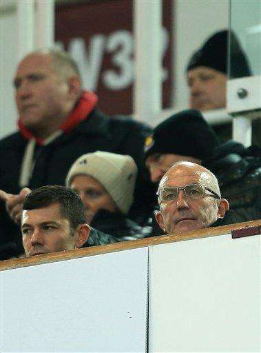 Newly appointed West Bromwich Albion Manager Tony Pulis, front right, looks on from the stands during the English Premier League match between West Ham and West Bromich Albion at Upton Park, London Thursday Jan. 1, 2015. (AP Photo/Stephen Pond/PA) UNITED KINGDOM OUT The Associated Press