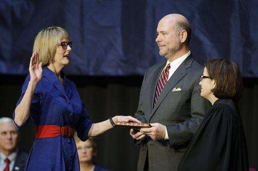INDIANAPOLIS (AP) - Indiana history was made during a Statehouse ceremony Wednesday, as three Republican women elected as Indiana's secretary of state, treasurer and auditor were formally sworn in to office.