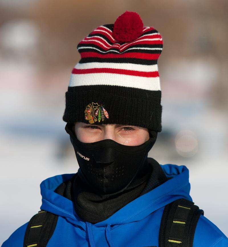 Palatine resident Donielle Johnson braves the cold at the Palatine train station to catch her ride into the city.
