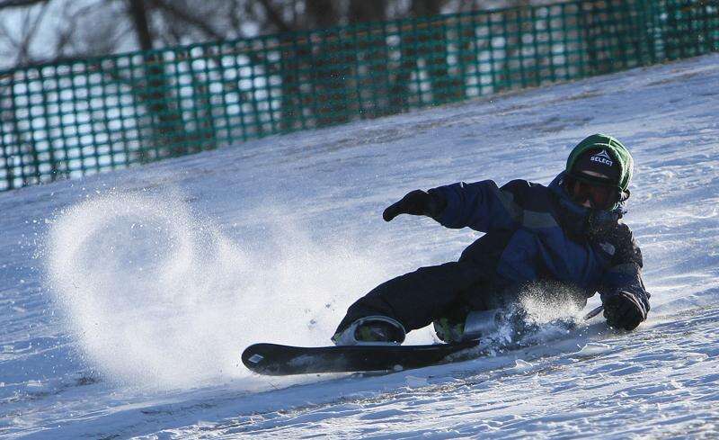 Seven-year-old Lukas McCaulou of Mundelein braves the sled hill at Keith Mione Community Park in Mundelein.