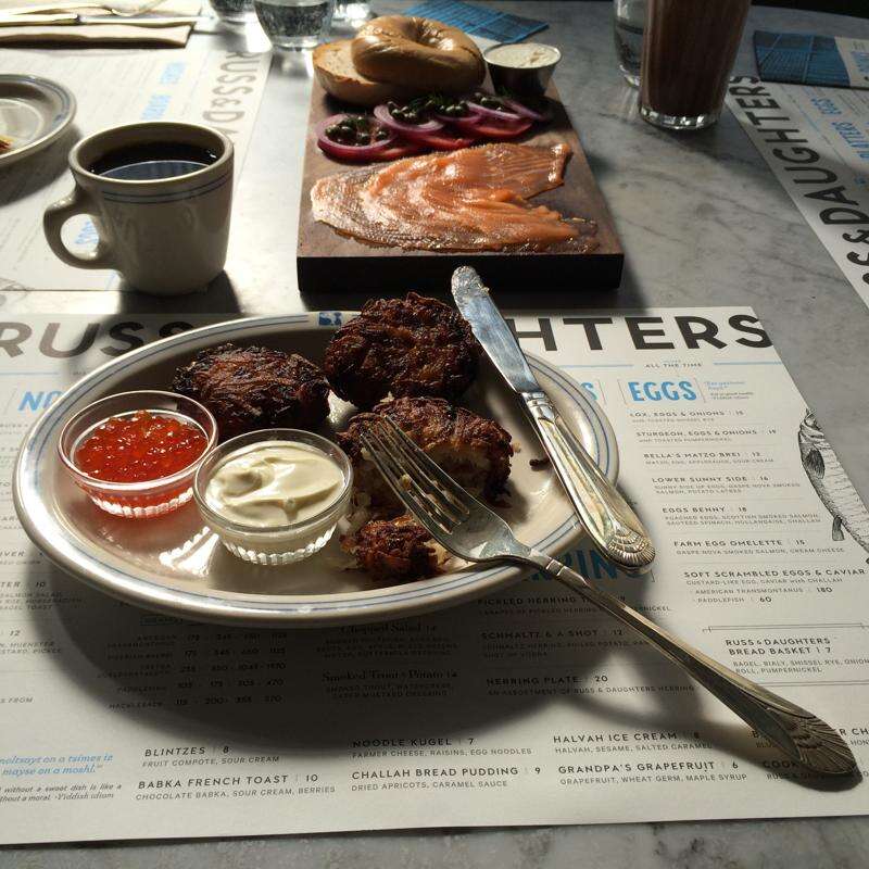 Russ & Daughters Cafe: 127 Orchard St., Manhattan, russanddaughterscafe.com/. No reservations.