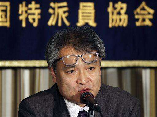 Takashi Uemura, a former journalist of the Asahi newspaper, attends a press conference in Tokyo, Friday, Jan. 9, 2015. Uemura, who wrote stories about women forced into sex slavery by Japan during World War II filed a defamation suit Friday against a publisher and a scholar who accused him of fabricating the issue. (AP Photo/Koji Sasahara) The Associated Press