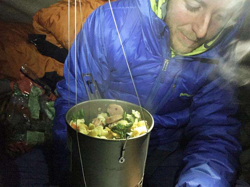 Tommy Caldwell eats dinner during what has been called the hardest rock climb in the world. Associated Press/Dec. 29, 2014