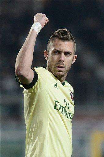 AC Milan's Jeremy Menez celebrates after scoring during a Serie A soccer match between Torino and AC Milan at the Olympic stadium, in Turin, Italy, Saturday, Jan. 10, 2015. (AP Photo/Massimo Pinca) The Associated Press