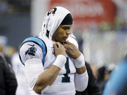 Carolina Panthers quarterback Cam Newton walks on the sideline against the Seattle Seahawks during the second half of an NFL divisional playoff football game in Seattle, Saturday, Jan. 10, 2015. (AP Photo/Ted S. Warren) The Associated Press