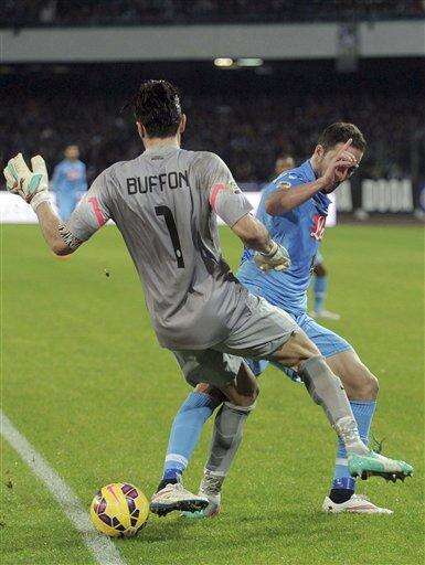 Napoli thought it had leveled again five minutes later when Buffon dropped a cross after colliding with Kalidou Koulibaly and Caceres bundled the ball into his own net but the referee awarded a foul, amid furious protests from the home team.