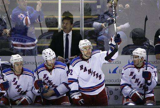 The Rangers took nearly 10 minutes to get their first shot on goal, but still ended up ahead 2-0 after the first period when they scored after faceoffs in the offensive zone.