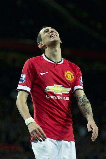 Manchester United's Angel Di Maria reacts after a missed opportunity during his team's English Premier League soccer match between Manchester United and Southampton at Old Trafford Stadium, Manchester, England, Sunday Jan. 11, 2015. (AP Photo/Jon Super) The Associated Press