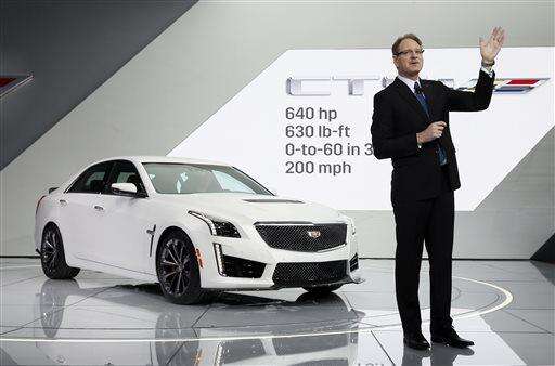 FILE - In this Jan. 13, 2015 file photo, Cadillac president Johan de Nysschen introduces the 2016 CTS-V during media previews for the North American International Auto Show in Detroit. The health of the car industry can be measured by the number of growling, preening performance cars on the show floor. (AP Photo/Paul Sancya, File) The Associated Press