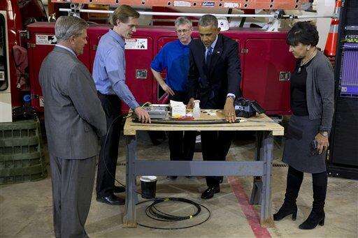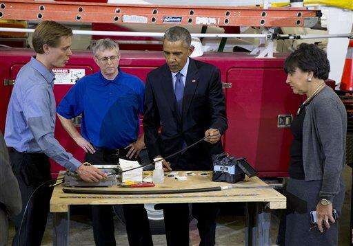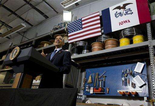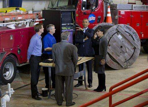 Obama said faster speeds would create jobs and allow local businesses to compete in the global economy. "Today high-speed broadband is not a luxury, it's a necessity," Obama said from a storage area at Cedar Falls Utilities, with shelves full of coiled wire and other equipment.