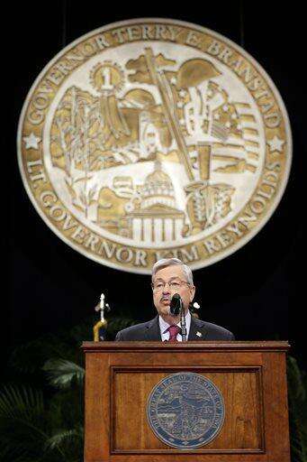 Iowa Gov. Terry Branstad delivers remarks after taking the oath of office during inauguration ceremonies, Friday, Jan. 16, 2015, in Des Moines, Iowa. (AP Photo/Charlie Neibergall)