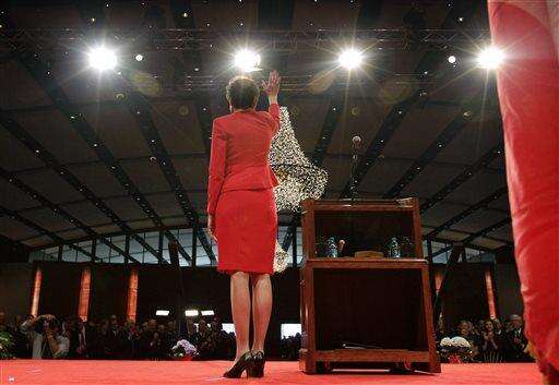Iowa Lt. Gov. Kim Reynolds waves after her speech during inauguration ceremonies, Friday, Jan. 16, 2015, in Des Moines, Iowa. (AP Photo/Charlie Neibergall)