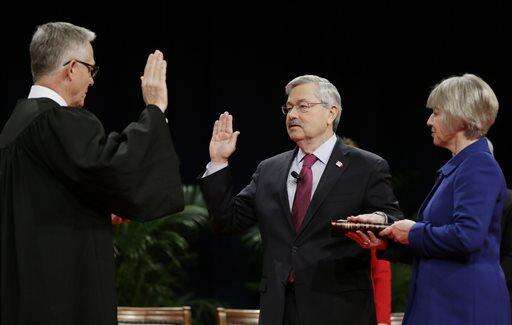 The 68-year-old Republican took the oath of office at a convention center in downtown Des Moines before more than a thousand elected officials and GOP loyalists. In the crowd was New Jersey Republican Gov. Chris Christie, a potential 2016 presidential candidate.