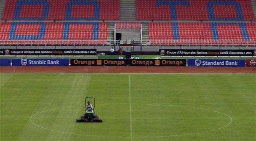A stadium worker cuts the grass ahead of the opening African Cup of Nations Group A soccer match in Bata, Equatorial Guinea, Friday Jan. 16, 2015. (AP Photo/Themba Hadebe) The Associated Press