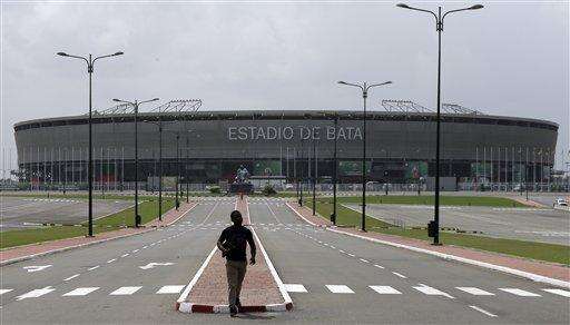 A man walks in front of the Bata stadium in Bata, Equatorial Guinea, Friday Jan. 16, 2015 which will host the opening African Cup of Nations Group A soccer match on Saturday between the tournament hosts and Congo. (AP Photo/Themba Hadebe) The Associated Press