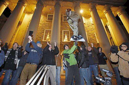 Friday's settlement prompted calls by Paterno supporters to bring back to campus the 7-foot bronze statue of the coach that was taken down in 2012. University President Eric Barron says "there will be a time and place" to decide what to do about the statue.