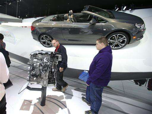 Visitors look at the Chevrolet Cascada display at the North American International Auto Show at Cobo Center in downtown Detroit on Saturday, Jan. 17, 2015 in Detroit. Saturday was the first day the show was open to the public. It runs through Jan. 25. (AP Photo/Detroit Free Press, Kirthmon F. Dozier)