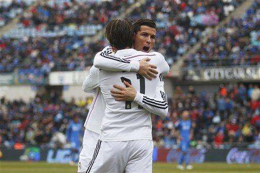 Karim Benzema used a skillful change of foot to open a passing angle and set up Ronaldo to net in the 63rd. James Rodriguez then crossed for Gareth Bale and Ronaldo to add goals in the 67th and 79th.