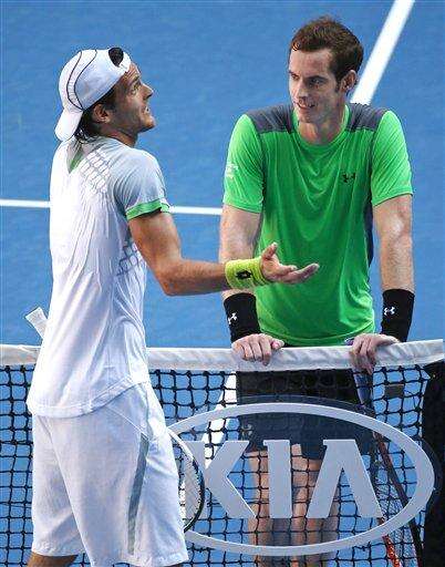 Andy Murray hasn't had a match on the center court at Melbourne yet this year, but it hasn't bothered the three-time finalist. He won in straights sets again, beating Joao Sousa 6-1, 6-1, 7-5 to set up a clash with No. 10 Grigor Dimitrov, who labored through a five-set win over 2006 Australian Open finalist Marcos Baghdatis.