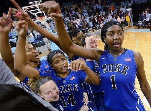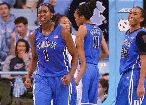 UNC: Stephanie Mavunga had 15 points and 15 rebounds. ... Coleman scored 14 points, one coming after halftime. ... UNC converted 23 Duke turnovers into 16 points. ... With forward Xylina McDaniel out with a leg injury, UNC has attempted 62 3s in the past two games.