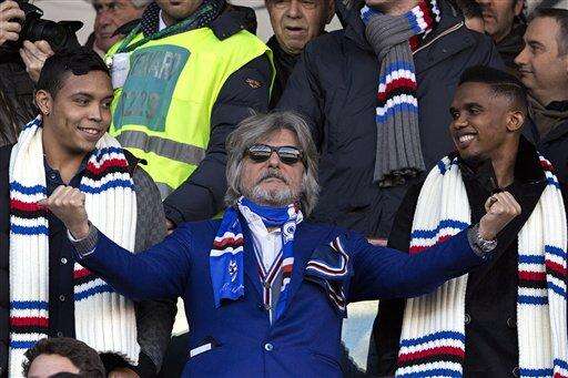 In Genoa, all eyes were on the stands, where club president Massimo Ferrero sat with a smiling Eto'o and fellow new signing Luis Muriel, with all three wearing Sampdoria scarves.