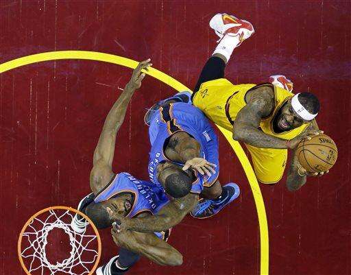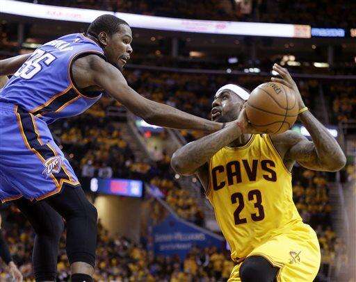 James made a pair of 3-pointers and a nasty fade-away jumper to give the Cavs a 91-80 lead. Later, the four-time MVP fed Kevin Love for a 3-pointer with 3:38 left that put the Thunder away.