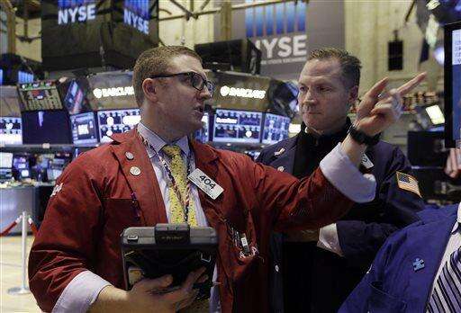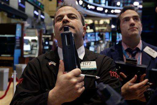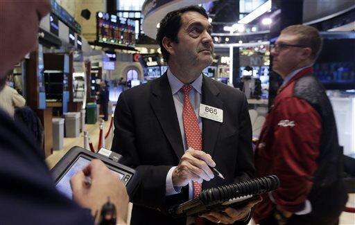 Specialists work on the floor of the New York Stock Exchange Tuesday, Jan. 27, 2015. U.S. stocks are tumbling in midday trading, weighed down by disappointing forecasts from big-name companies and an unexpected drop in orders of long-lasting goods. (AP Photo/Richard Drew) The Associated Press