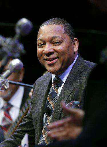 FILE - In this Jan. 30, 2014 file photo, Musician Wynton Marsalis speaks during a lecture performance at Harvard University's Sanders Theatre in Cambridge, Mass. The Jazz at Lincoln Center Orchestra with Wynton Marsalis will tour South America in March for the first time in 10 years. JALC announced Tuesday, Jan 27, 2015, that the 12-city tour kicks off Feb. 27 in New York and will visit Puerto Rico, the U.S. Virgin Islands, Mexico and six South American countries. The program will celebrate the influence of musical traditions from throughout the Americas on jazz. (AP Photo/Elise Amendola, File)