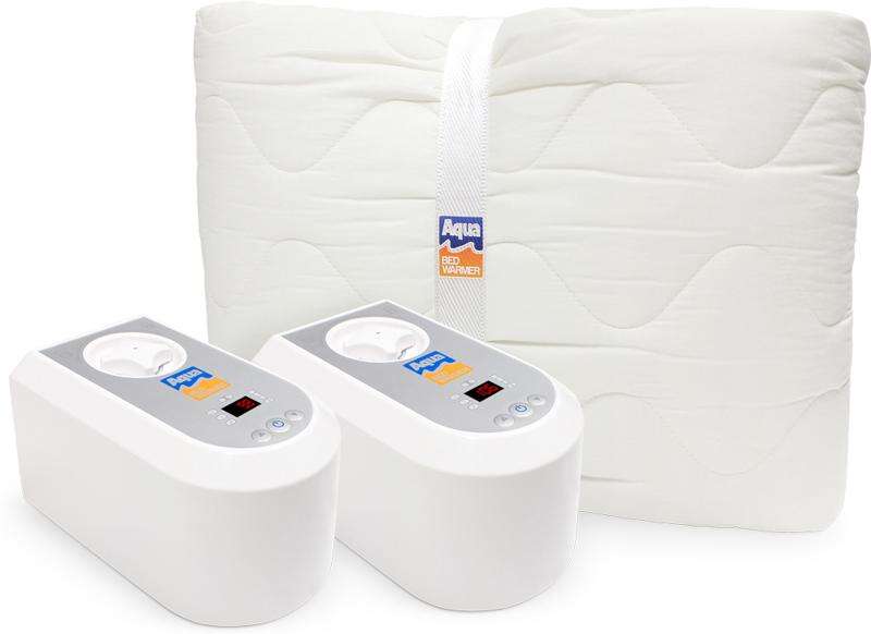 The Aqua Bed Warmer, for instance, uses hot water to take the cold edge off. It includes a water heater, which sits away from the bed and pumps warm water through a mattress pad. The product costs between $249-$449 depending on the size of the bed and whether you want dual-zone heat.