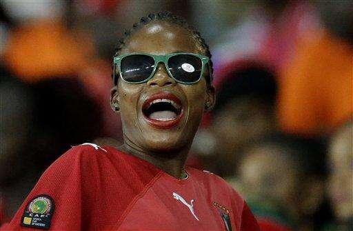 An Equatorial Guinea soccer fan sings during the African Cup of Nations quarter final soccer match between Equatorial Guinea and Tunisia in Bata, Equatorial Guinea, Saturday, Jan. 31, 2015. (AP Photo/Themba Hadebe) The Associated Press