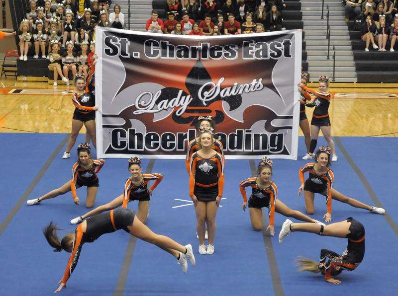 St. Charles East performs at the IHSA Cheerleading sectional at DeKalb High School Saturday.