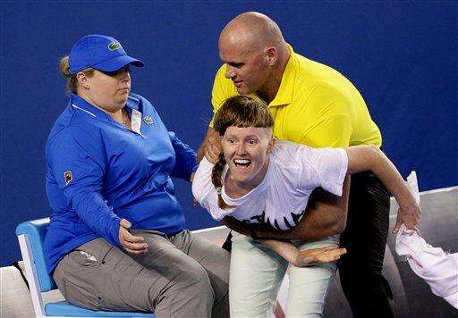 After two tough first sets decided in tiebreakers, when there was eight breaks of serve and plenty of tension, Djokovic broke open the match after the sixth game of the third set and won 12 of the last 13 games. In the first set, he tumbled to the court, lunging to reach a volley, and needed treatment on his right thumb - shaking his right hand repeatedly. The second set was disrupted for five minutes by a political protester running onto the court, causing a lockdown of sorts, and another momentum shift. In the third set, it was fatigue, with Djokovic appearing to be struggling badly.