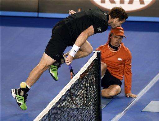 Nice segue. Murray - to set the record straight - had just lost an Australian Open final for the fourth time, including three at the hands of Djokovic. Murray won the U.S. Open in 2012 and Wimbledon in 2013 to end decades-long droughts at the majors for British men, but was clearly upset at his inability to crack it in Melbourne after this 7-6 (5), 6-7 (4), 6-3, 6-0 defeat.