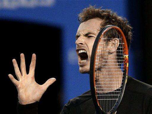 Andy Murray of Britain reacts to a lost point to Novak Djokovic of Serbia during the men's singles final at the Australian Open tennis championship in Melbourne, Australia, Sunday, Feb. 1, 2015. (AP Photo/Bernat Armangue) The Associated Press