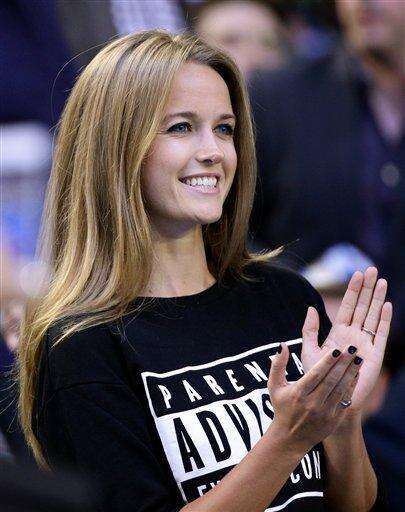 Kim Sears, fiancee of Andy Murray of Britain, applauds before his men’s singles final against Novak Djokovic of Serbia during the men's singles final at the Australian Open tennis championship in Melbourne, Australia, Sunday, Feb. 1, 2015. (AP Photo/Rob Griffith) The Associated Press