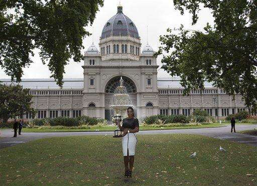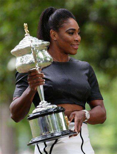 Serena Williams of the U.S. poses with her Australian Open trophy the day after defeating Russia's Maria Sharapova in the women's singles final at the Australian Open tennis championship in Melbourne, Australia, Sunday, Feb. 1, 2015. (AP Photo/Rob Griffith) The Associated Press