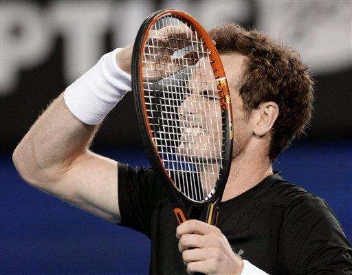 Andy Murray of Britain reacts as he plays Novak Djokovic of Serbia during the men's singles final at the Australian Open tennis championship in Melbourne, Australia, Sunday, Feb. 1, 2015. (AP Photo/Bernat Armangue) The Associated Press