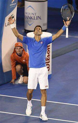Djokovic swung momentum in a close match with a service break in the eighth game of the third set, winning four straight points. When he took a 4-0 lead in the last set, he smacked his fist hard against his chest in celebration.