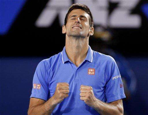 Novak Djokovic of Serbia celebrates after defeating Andy Murray of Britain in the men's singles final at the Australian Open tennis championship in Melbourne, Australia, Sunday, Feb. 1, 2015. (AP Photo/Vincent Thian) The Associated Press