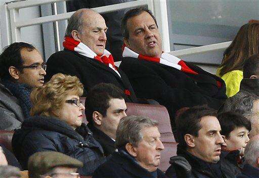 New Jersey Gov. Chris Christie, who is considering a run for the White House, was sitting in the VIP box as part of a three-day visit to London.