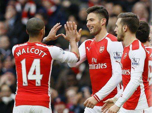 Theo Walcott added a third and his first league goal of the season after exchanging passes with Santi Cazorla before firing inside the far post.