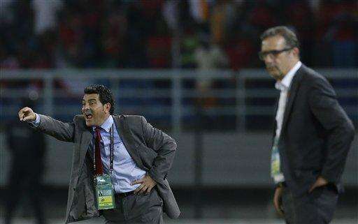 Equatorial Guinea's head coach Esteban Becker, left, gestures as Tunisia's head coach Georges Leekens, right, watches during their African Cup of Nations quarter final soccer match in Bata, Equatorial Guinea, Saturday, Jan. 31, 2015. (AP Photo/Themba Hadebe) The Associated Press
