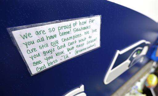 Caoili and other fans said that even if the loss sticks with the team, and the region, a few more Super Bowl championships could take the edge off. Odds-makers have Seattle 5-to-1 favorites to win it all next year. In the Seattle suburb of Renton, where the Seahawks are headquartered, fans left balloons and signs for the team in a memorial thanking them for a great season. "We still believe," said one.