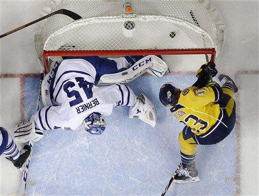 James Neal's shot from the left side was stopped by Toronto goaltender Jonathan Bernier, but Fisher was in front to pry the rebound loose. Wilson pounced on the loose puck to put it away for his 16th of the season.